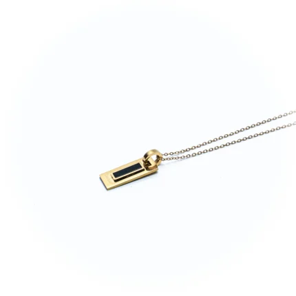 Gold-Toned Rectangle Pendant Necklace with Black Inlay