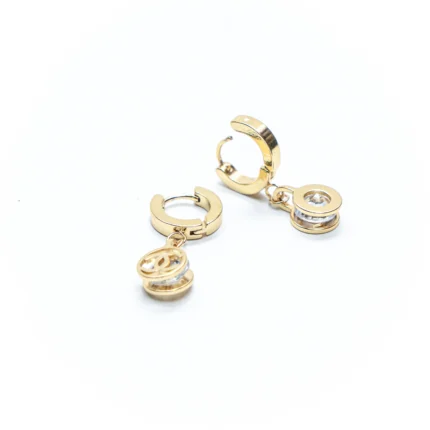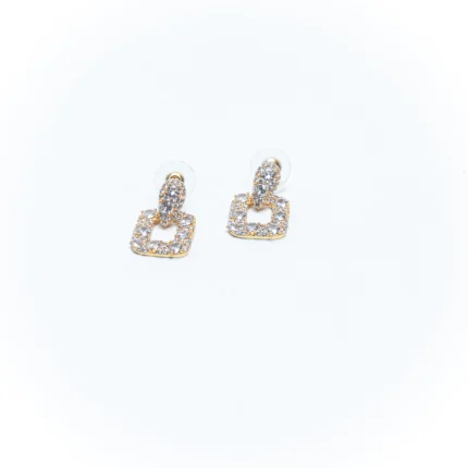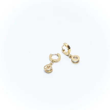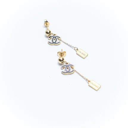 Gold-Toned Drop Earrings with Enamel Charm and Tag