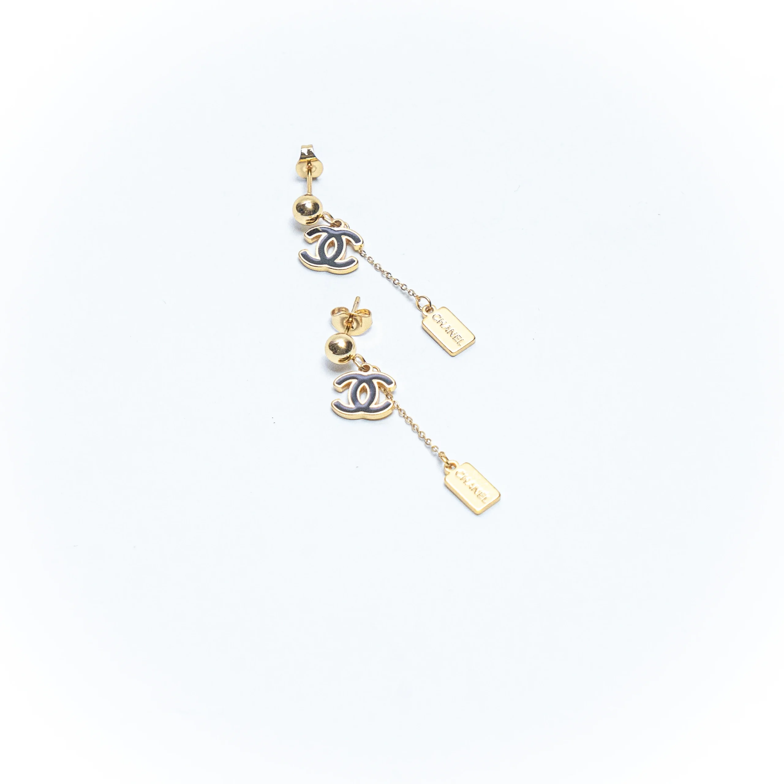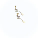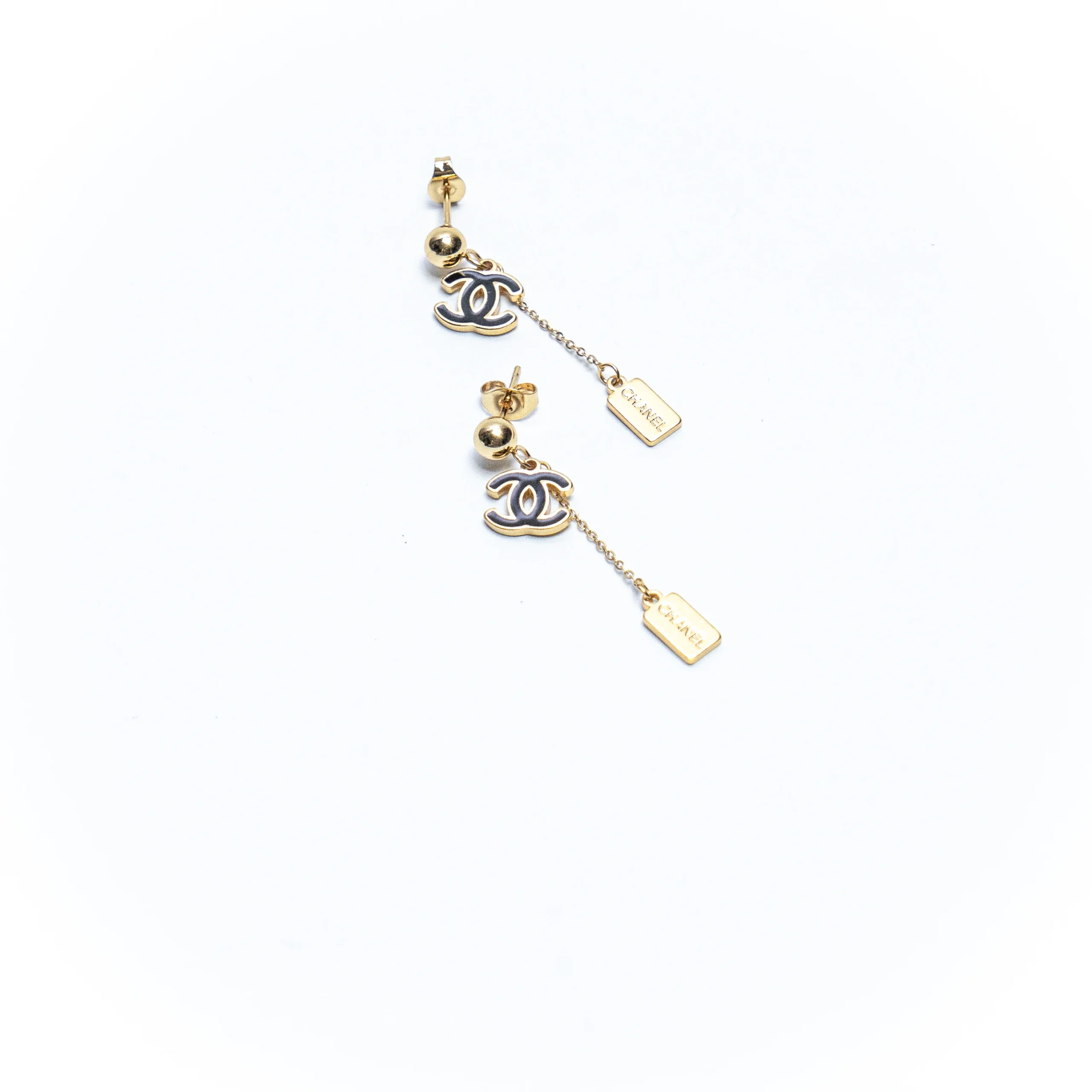 Gold-Toned Drop Earrings with Enamel Charm and Tag