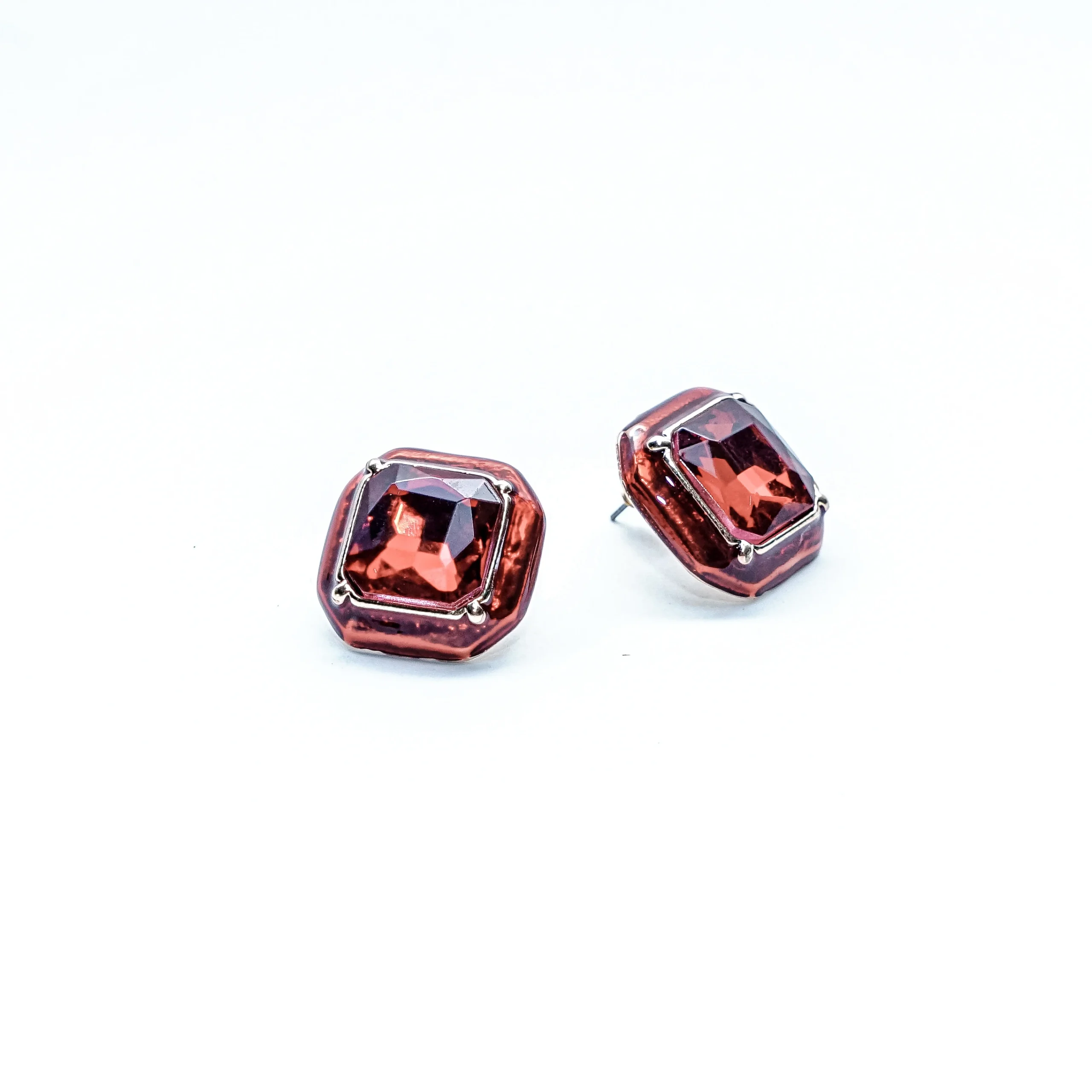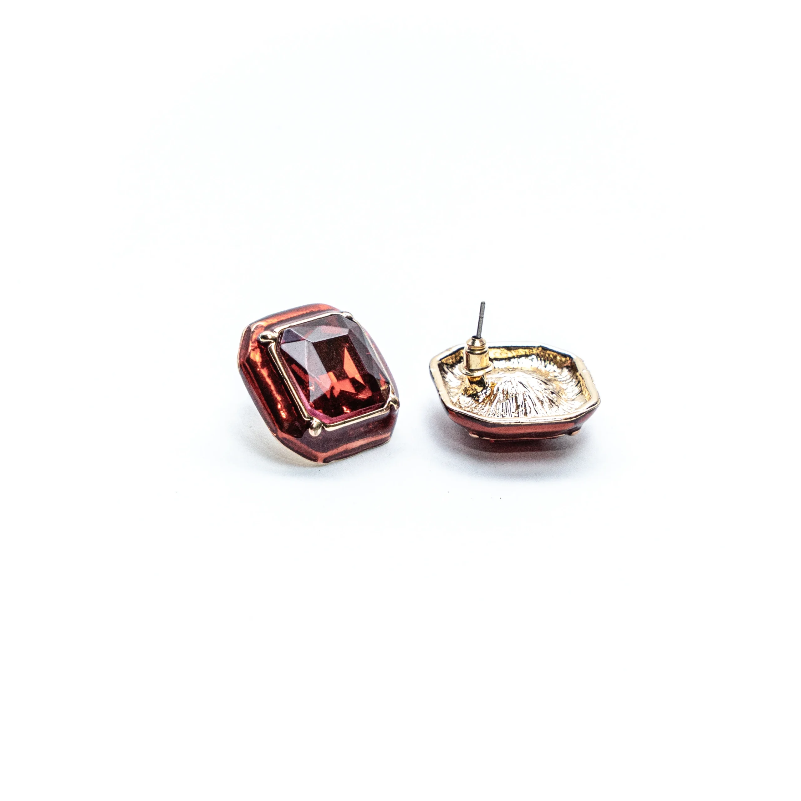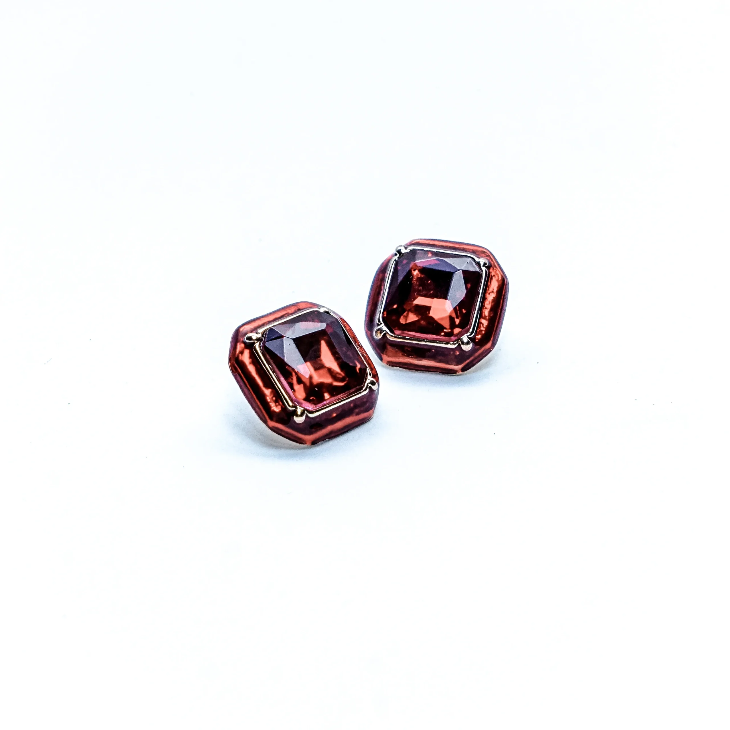 - Cushion-cut crystal in deep copper tones